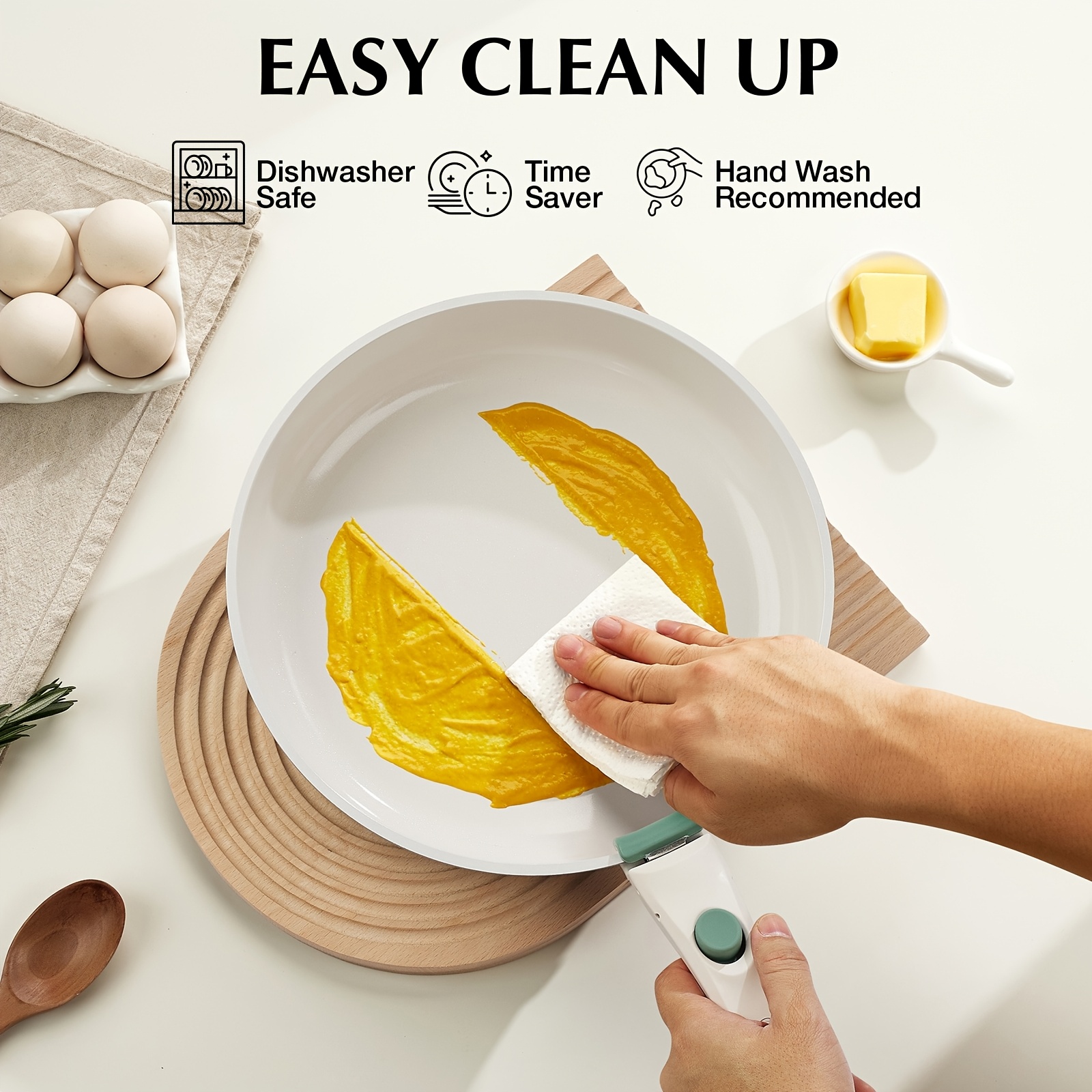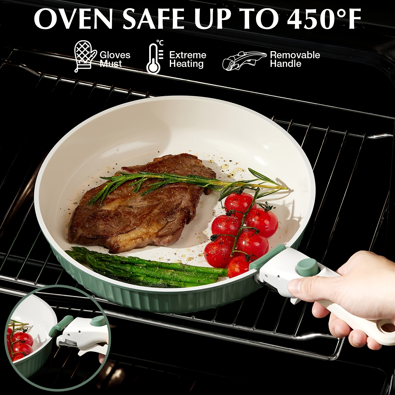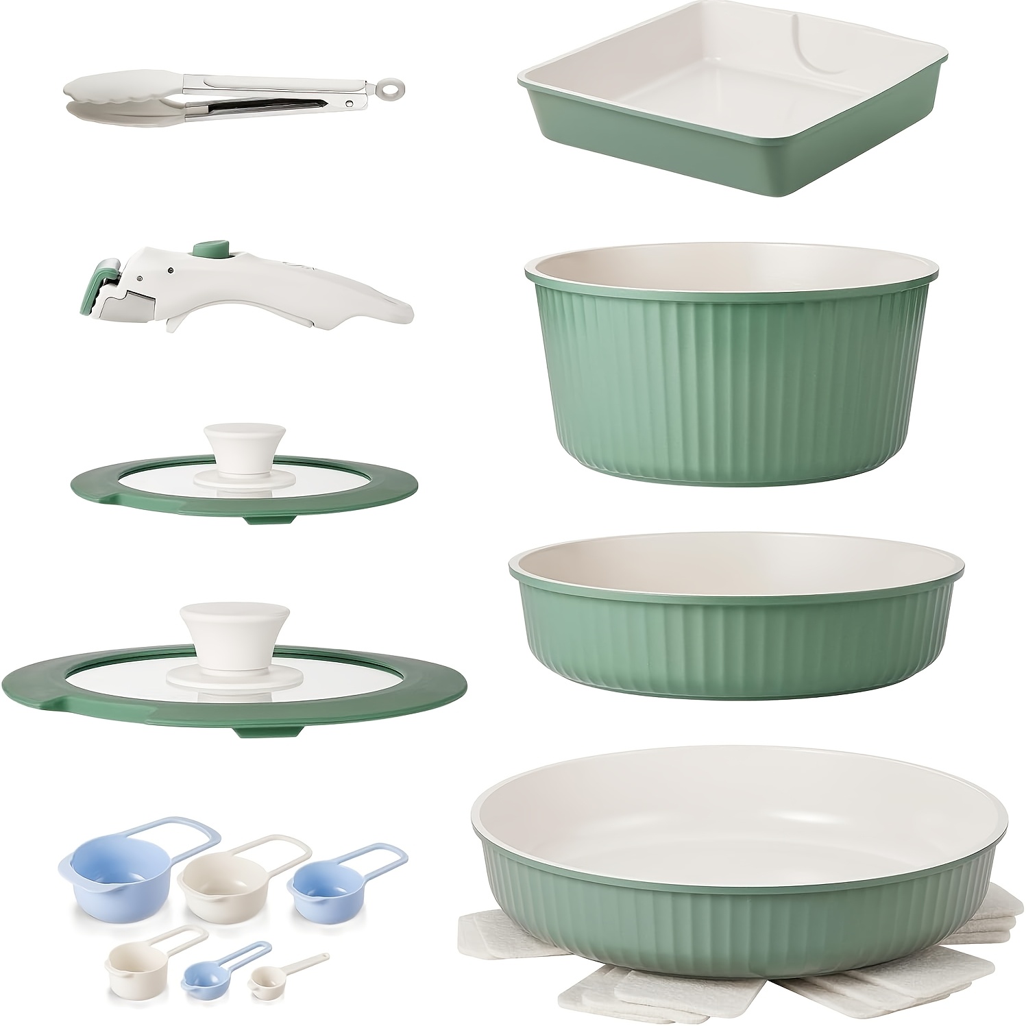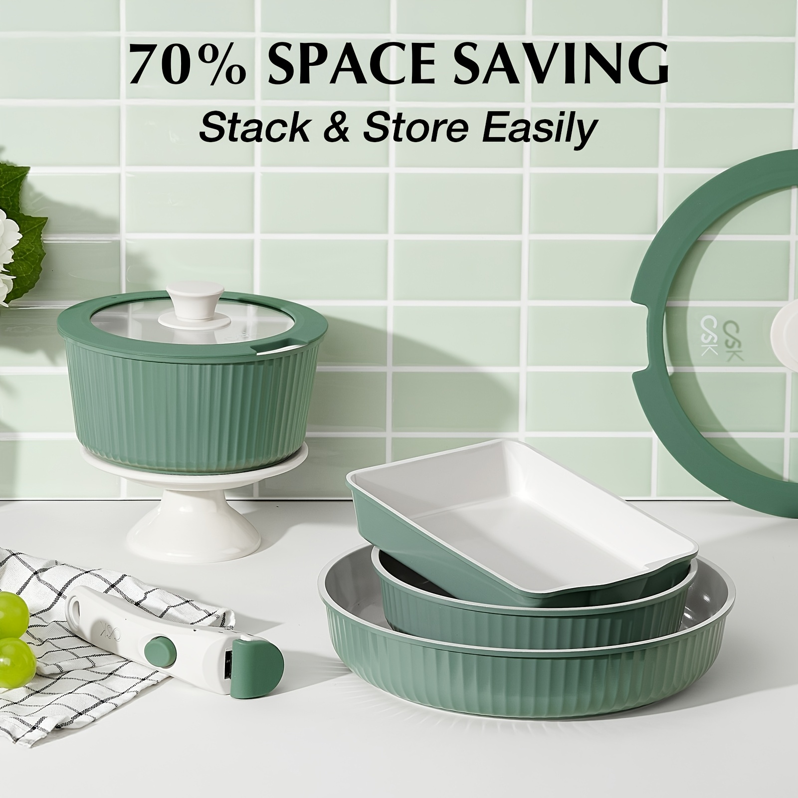 12pcs\u002F5pcs Nonstick Cookware Set with Ceramic Coating & Detachable Handle - Induction Suitable for Stovetops, Stackable Pots and Pans, for RV, Boiling, Frying, Sauce Making - Removable Handle for Use